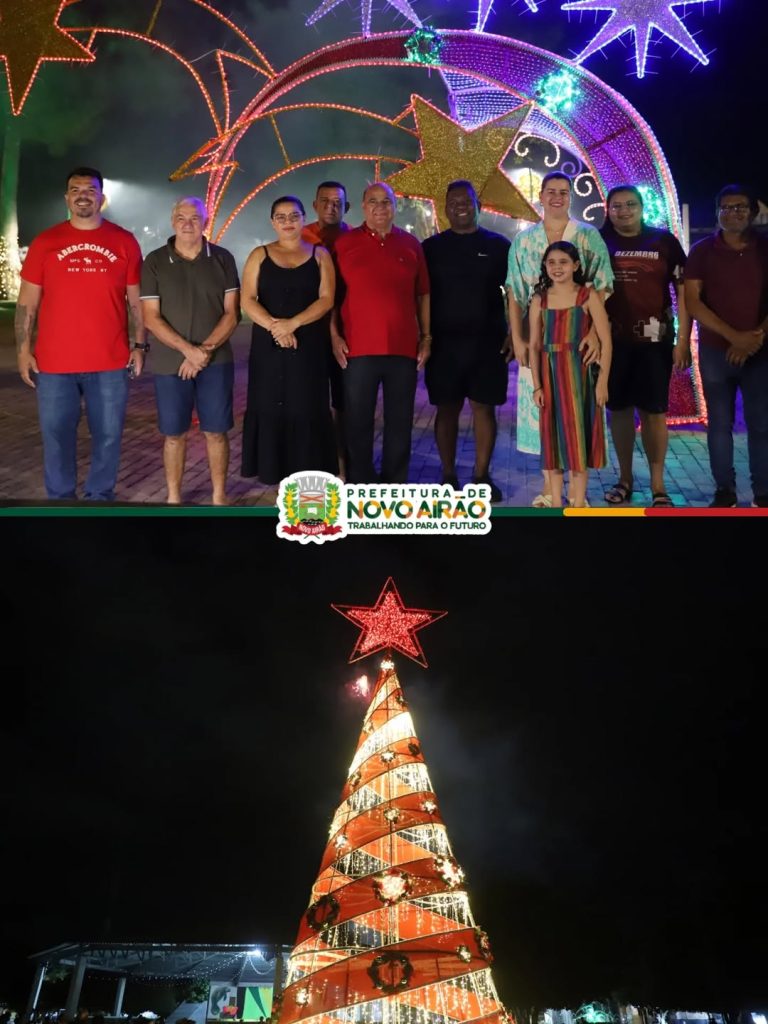 O prefeito em exercício de Novo Airão, Humberto Lima, realizou na noite desta terça-feira (02/12) o acionamento das luzes decorativas instaladas no Portal da Cidade, na Praça dos Pinheiros e no bairro São Francisco (Chicó). Pela primeira vez, a iniciativa ampliou o acesso à ornamentação, levando iluminação aos bairros, fortalecendo o espírito natalino e a participação da comunidade durante todo o mês de dezembro.
