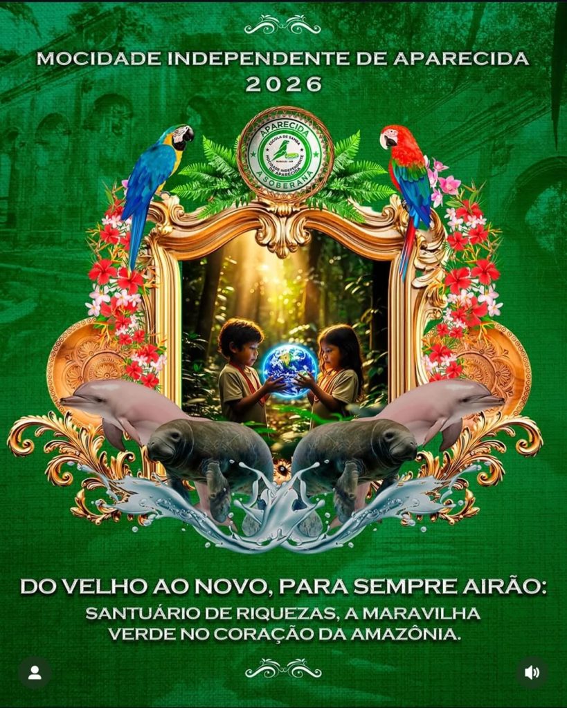 ‘Do Velho ao Novo, Para Sempre Airão: Santuário de Riquezas, A maravilha verde no Coração da Amazônia’. Este será o enredo que a GRES Mocidade Independente de Aparecida, vai desfilar no Sambódromo de Manaus, no Carnaval 2026.